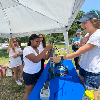 Shelby Brunner from the Great Lakes Observing System (GLOS), who shared her incredible expertise of Marine Biology demonstrating how to operate the SONDE — and the best part? Our sailors used it every week throughout the program to collect valuable data right from the water!